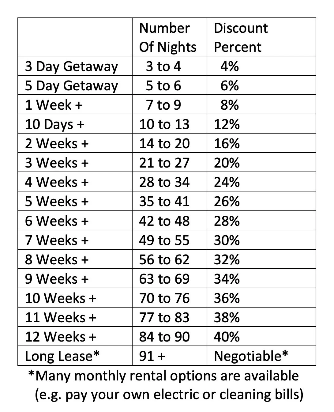 Long Stay Discounts